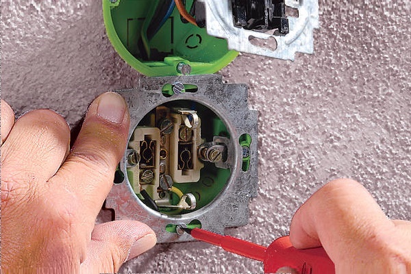 - Verifique a fase com uma chave de fenda especial com indicador.