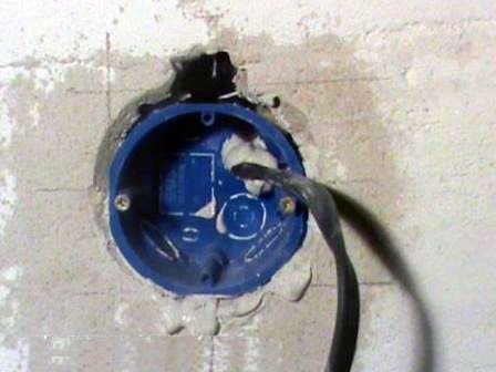 Os soquetes devem ser selecionados de acordo com o material da parede: para concreto ou drywall. Os dispositivos para concreto também são usados em outras bases semelhantes: para concreto de tijolo, gás e espuma, blocos de argila expandida, etc. Um orifício do tamanho certo é feito na parede e a caixa é fixada com uma argamassa de gesso ou cimento.