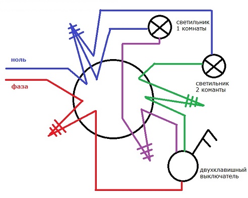 Mestre não muito experiente pode ser não apenas para descobrir com esquemas e o procedimento para conectar um switch com duas chaves. Mas se você entender o princípio e a sequência do trabalho, não haverá problemas.