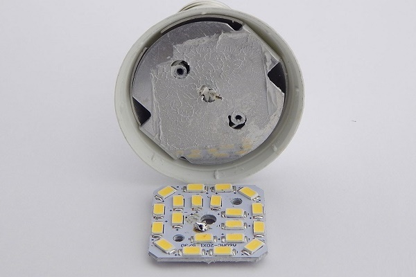 Os chips de LED são montados em uma placa de alumínio, que desempenha o papel de base para a instalação de cristais e dispositivos para remover o fluxo de calor dos diodos para a zona do radiador.