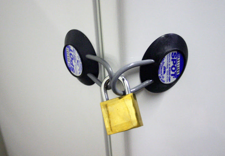 No entanto, se você rejeitar a possibilidade de adquirir recursos on-line e não encontrar esses dispositivos nas lojas da sua cidade (como, por exemplo, é difícil em assentamentos provinciais), poderá trapacear e economizar dinheiro. Para refrigeradores de câmara única com uma alça completa, por exemplo, compre um cabo longo com uma trava combinada, semelhante àquelas penduradas em laptops ou bicicletas. É realista encontrar cabos de segurança suficientemente longos ou solicitá-los. Não é necessário comprar um especializado, você pode apenas ter um cabo com carabinas nas duas extremidades e adicionar um cadeado com um cadeado. É verdade que essa opção é inconveniente, pois mesmo um cabo bem selecionado ao longo do comprimento tornará possível abrir levemente a porta (não funcionará para retirar nada do dispositivo). Bem, será inconveniente remover o cabo sempre.