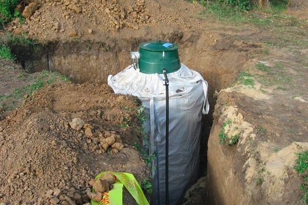 Esta opção é adequada para habitações suburbanas, com uma pequena área local. Idealmente, quando tem um pescoço alto, é enterrado a uma profundidade de aproximadamente 4 m, o que ajudará a evitar a condensação de gás durante o tempo frio.
