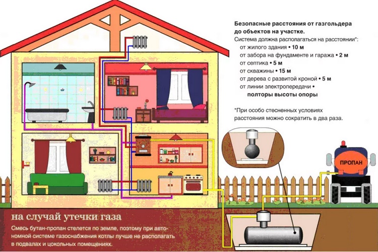 Nem todas as casas de verão são fornecidas com suprimentos de gás centralizados. Aquecer uma casa com eletricidade é caro. Uma boa alternativa é a gaseificação autônoma. Se o grupo de cilindros não estiver satisfeito, o tanque de gasolina, um tanque especial que é preenchido com uma mistura de hidrocarbonetos liquefeitos, será a saída.