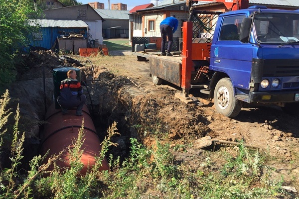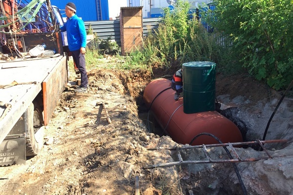 Após a fixação do tanque, ele é revestido com um lubrificante especial que protege o metal da corrosão. O próximo estágio é o dispositivo de proteção ânodo-cátodo. Depois disso, eles colocam o gasoduto, enchem o poço e o poço com o solo.