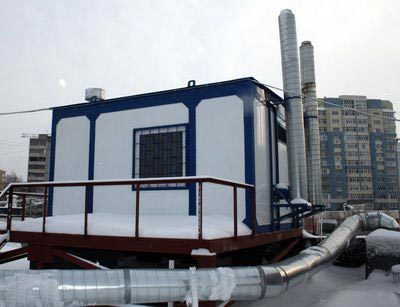 Quando o edifício já foi construído, apenas o tipo modular de bloco da sala da caldeira no telhado é adequado. Como regra, esse sistema é instalado onde as comunicações atuais já estão desgastadas e requerem reparo com uma substituição completa.