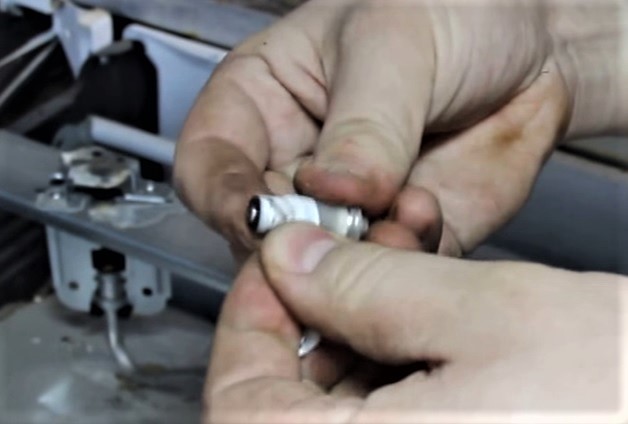 Para obtê-lo, remova a alça, levante a mesa e desaparafuse os elementos de fixação. Em seguida, abra a caixa do temporizador, sopre e retire o pó com uma escova, lubrifique o pêndulo e as engrenagens.