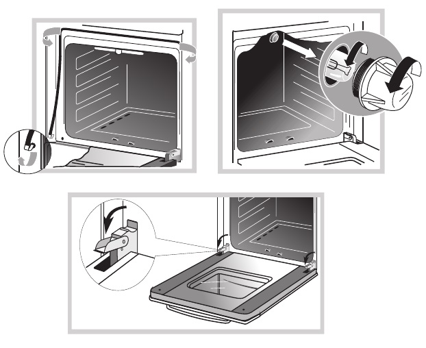 Os primeiros são facilmente removíveis: basta levantar as duas travas, fechar a porta e puxar para cima e levemente em sua direção. Em seguida, a porta pode ser convenientemente lavada ou imediatamente retornada ao seu lugar, já na posição correta. Depois de inserir a porta nas ranhuras, puxe-a para cima um pouco e abra totalmente e abaixe as travas.