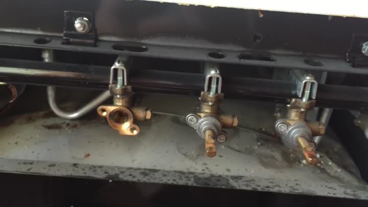 Após a montagem do guindaste, não se apresse em reinstalar o painel frontal. Primeiro, coloque uma bandeira na haste sem ela, abra o gás e aplique água com sabão na torneira. Se nenhuma bolha aparecer em qualquer lugar, seque e monte o fogão.