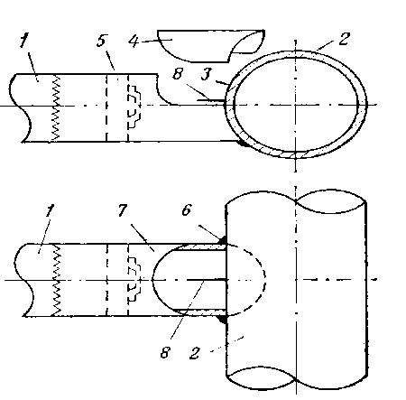 Em seguida, faça um orifício e monte o tubo. Suas juntas de topo são soldadas dos dois lados e fecham a válvula. Depois feche os orifícios.