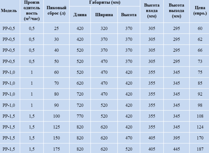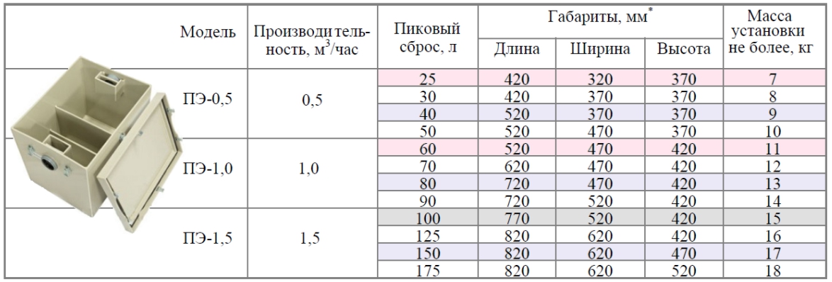 Separadores de graxa para lavagem estão disponíveis no mercado com capacidade de 0,145 l / se volume de 50 l ou mais. A menor capacidade do dispositivo simplesmente não permite fisicamente desempenhar efetivamente as funções de cortar gordura, portanto não faz sentido adquirir esses modelos.
