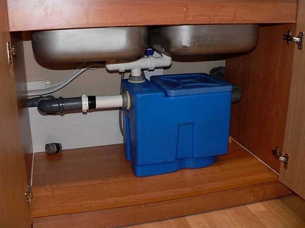 - Localizado abaixo do nível do esgoto. Tais modelos são instalados no porão ou no solo. Eles possuem uma bomba elétrica embutida que bombeia a água purificada até o nível do esgoto.