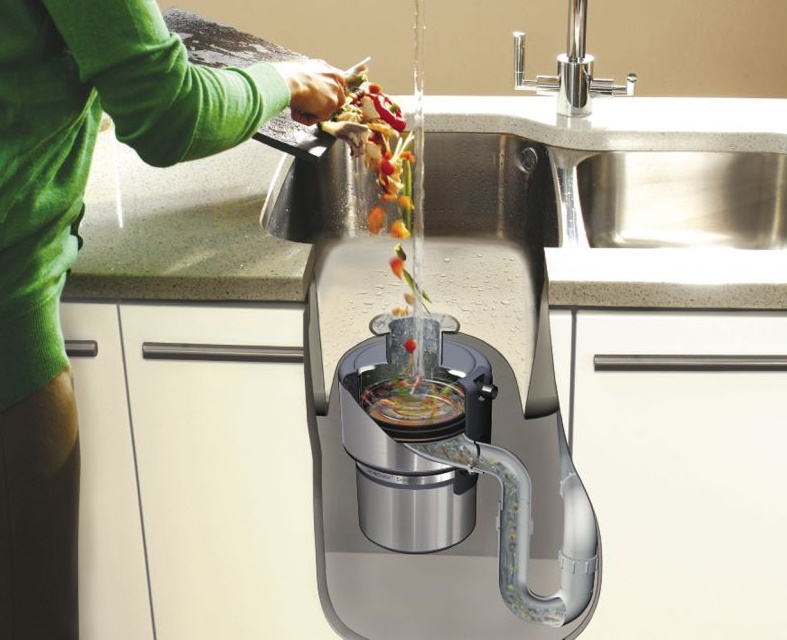 Para triturar resíduos orgânicos sob o conjunto da piamoedor de lixo. É montado embaixo da pia, conectado ao esgoto e conectado à rede. O dispositivo pode funcionar em vez de um sifão. Recomenda-se que a tomada não seja colocada embaixo da pia para protegê-la contra a umidade.