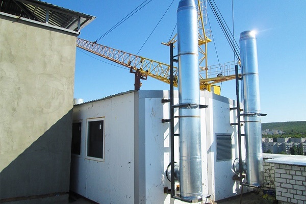 A chaminé de uma sala dessas caldeiras deve subir pelo menos 500 cm acima da cumeeira do telhado e ter um canal adicional para limpeza. Coletores de condensado devem ser instalados na chaminé e na ventilação.