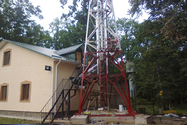 É colocado em um recipiente montado de acordo com o princípio das estruturas metálicas, que podem ser colocadas no pátio da casa. Resta apenas conectar a sala da mini-caldeira às comunicações.