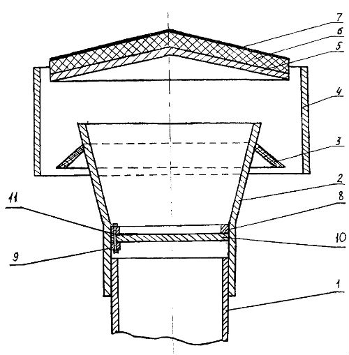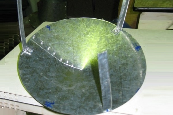 O projeto mais simples de implementar é a fabricação de um modelo de defletor em forma de prato. Esse boné para a chaminé pode ser facilmente feito com suas próprias mãos. Seus parâmetros geométricos dependem do diâmetro do tubo: