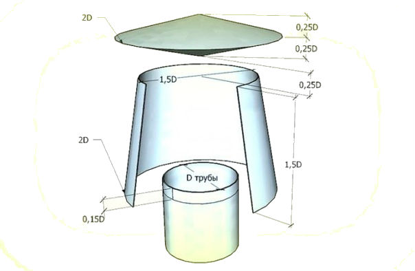 Com a fabricação independente do defletor, é necessário realizar cálculos e esboçar um esboço do produto futuro. É necessário proceder a partir do diâmetro interno da chaminé.