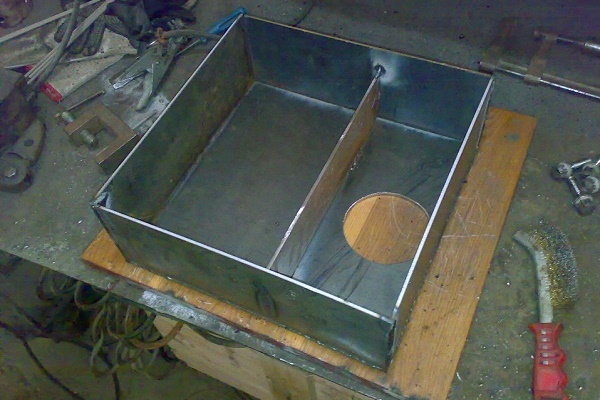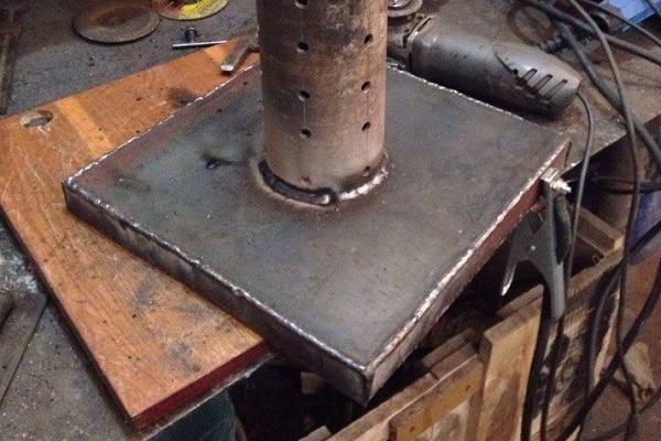 Um tubo de tubulação de gás de conexão perfurado é soldado na câmara inferior, à qual o compartimento superior com uma tampa removível é conectado por soldagem. Também é cortado em chapa de aço e soldado. Durante a soldagem, as juntas devem ser cuidadosamente verificadas quanto a folgas.