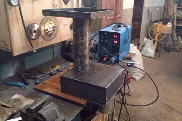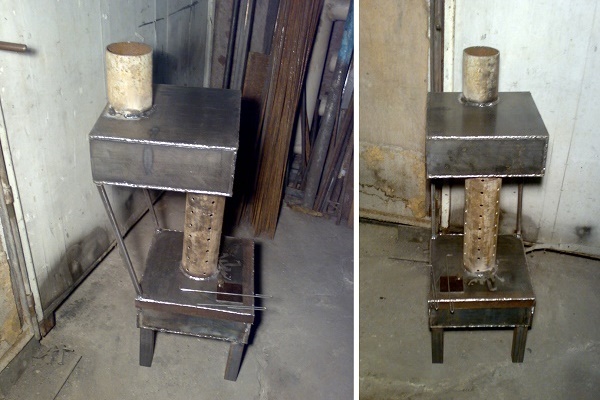 Para dar melhor estabilidade à estrutura, cantos metálicos são usados.A chaminé deve ser conectada ao tubo estritamente na vertical. Verificar trabalho finalizado fogões de trabalho você pode derramar óleo no compartimento inferior. Lá eles pegam fogo usando papel comum para esse fim.