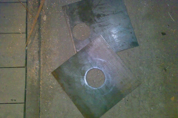Para fazer uma capa, um branco redondo com um diâmetro de 228 mm é recortado em chapa (espessura 5 mm). Um flange deve ser soldado ao longo da borda da peça de trabalho. Para isso, é necessária uma tira de metal com 3 mm de espessura e 40 mm de largura. Na tampa resultante ao lado, fazemos outro furo de visualização com um diâmetro de 18 mm. Sua porta desempenhará o papel de uma válvula de segurança.