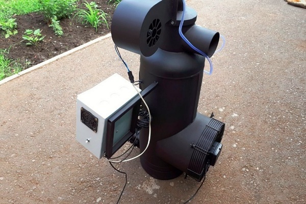 Quando uma mistura de gases é queimada no compartimento superior, a temperatura pode atingir 800 graus. Esse aquecimento requer um suprimento de ar ativo. Para isso, é fornecido um orifício de inspeção no compartimento inferior, através do qual, além disso, é derramado combustível. Para usá-lo para regular o suprimento de ar, é necessário um amortecedor.