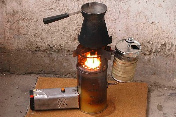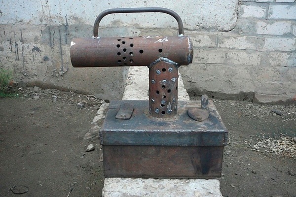 Este modelo é realmente popular entre os proprietários de casas e garagens. Facilite isso. É composto por dois compartimentos (câmeras). O combustível é derramado no inferior, que será aquecido para formar gases voláteis. Quando eles passam por um tubo perfurado localizado entre os compartimentos, os gases são saturados com oxigênio e inflamam.