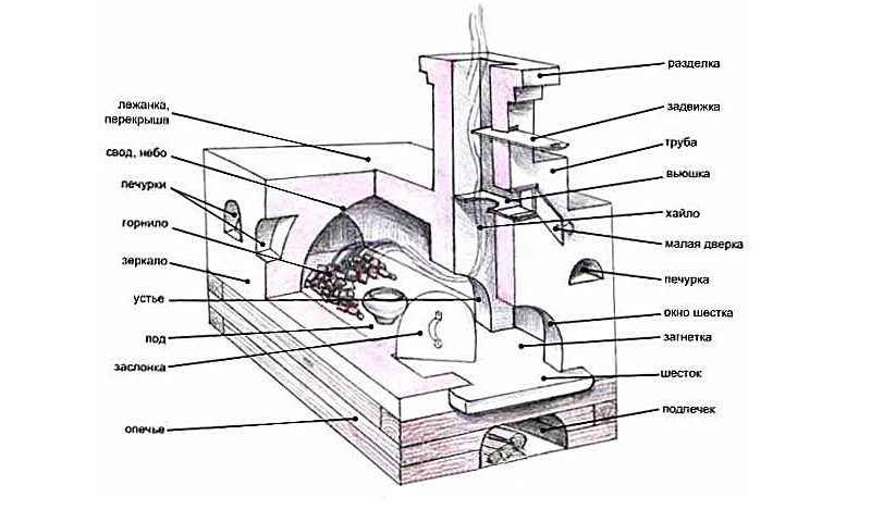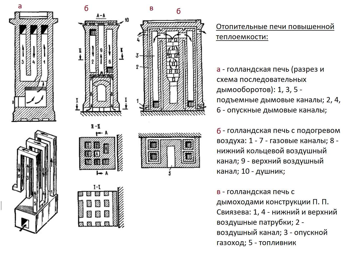 As qualidades prioritárias do material complementam com peso os recursos de design dos fornos. Para aumentar a capacidade de calor, são fornecidos canais e câmaras de fumaça, através dos quais a fumaça circula por um tempo antes de deixar o forno pela chaminé e para a atmosfera.