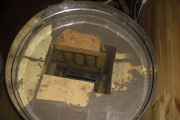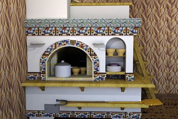 Na 18ª fila, eles começam a erguer as paredes do fogão. O espaço entre a câmara de cozinhar e a parte de aquecimento é preenchido com areia com tijolos quebrados. No dia 19, foi novamente realizada a abertura abobadada, localizada acima da sexta, e atrás dela está a boca do fogão.