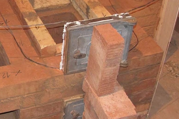 As câmaras são conectadas umas às outras por meio de quatro orifícios dispostos nas laterais da lareira. Através deles, os gases de combustão do forno são enviados para o compartimento de cozimento, depois redirecionados para a zona de aquecimento e de lá são expelidos para a atmosfera.A altura da chaminé deve ser de pelo menos 5 m e considere-a do fundo da fornalha.