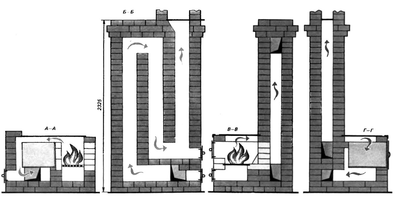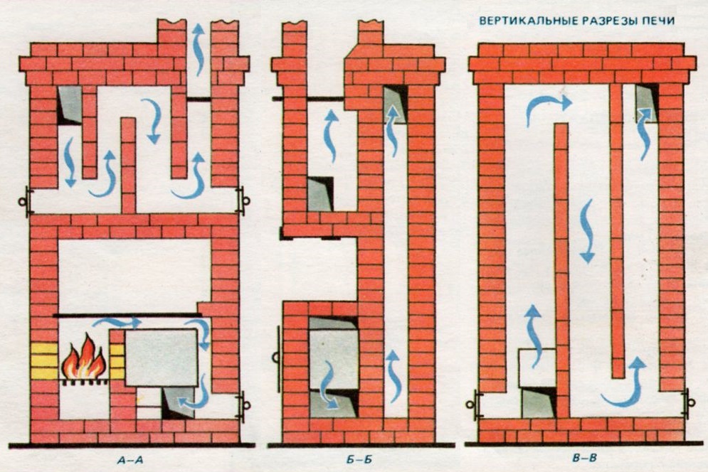 Se você decidir como e que tipo de fogão de tijolos é melhor construir na casa, considere que a fumaça se move idealmente verticalmente em uma direção ascendente ou descendente, dependendo do design. Somente sob a pressão dos gases acumulados acima ou abaixo da sobreposição ele flui para a próxima revolução.