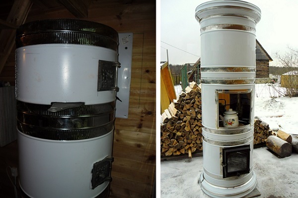 Para dar, um fogão quadrado ou redondo de paredes finas em miniatura é bastante adequado, se não for necessário cozinhar. Entre as opções combinadas, uma das pequenas variedades do fogão russo ou sueco será a ideal.