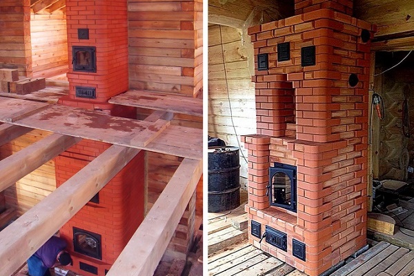 No terceiro grupo, há uma abundância de variações. No entanto, se levarmos em conta as estruturas feitas de tijolos, os fogões prevalecem principalmente. Embora possam ser de metal, mas com um revestimento de tijolos - o revestimento da fornalha com tijolos refratários.