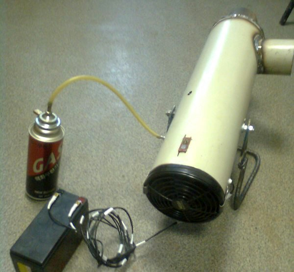 Pistola de calor a gás - um dispositivo poderoso que pode aquecer até uma sala grande no menor tempo possível. Essas unidades podem ser compradas em lojas especializadas ou você mesmo.
