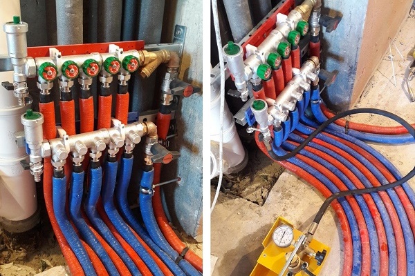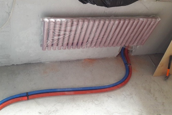 Ao planejar encher os tubos de plástico com betonilha após prensar o sistema, eles devem primeiro ser envolvidos com isolamento térmico.
