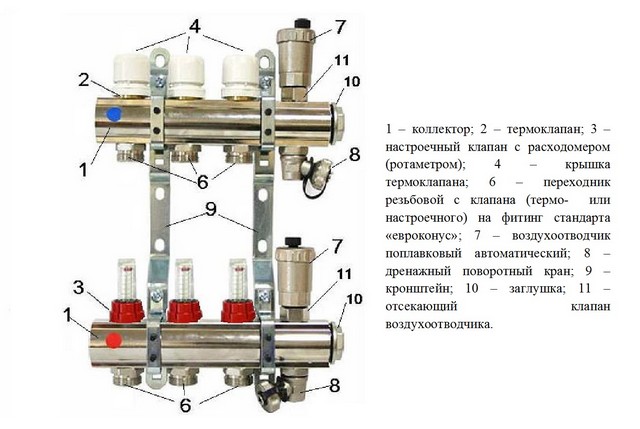 A base do circuito de aquecimento do coletor e do corpo de trabalho principal é a unidade de distribuição, referida nas pessoas comuns sistema de pente.
