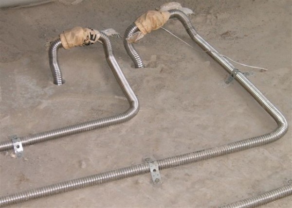 A melhor opção para instalar o sistema em um prédio de apartamentos é o uso de tubos corrugados de aço inoxidável.