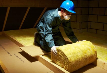 A lã mineral é usada como aquecedor não apenas para as paredes internas da casa, mas também para os tetos dos quartos do sótão, paredes externas dos edifícios.