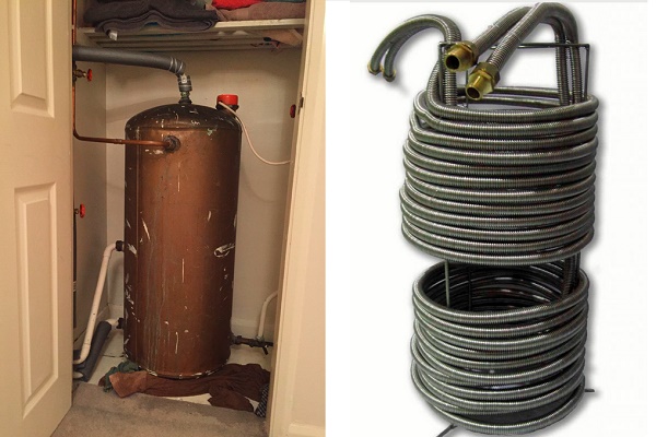 O tipo mais comum de dispositivo é um tanque de armazenamento, dentro do qual são colocados tubos de aço ou latão (bobina) com transportador de calor circulante.