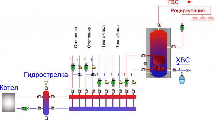 Para fazer isso, colide com um suprimento de água quente bomba de circulaçãoe após a instalação de uma válvula de três vias, controlada por um termostato da caldeira.