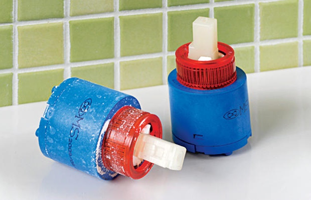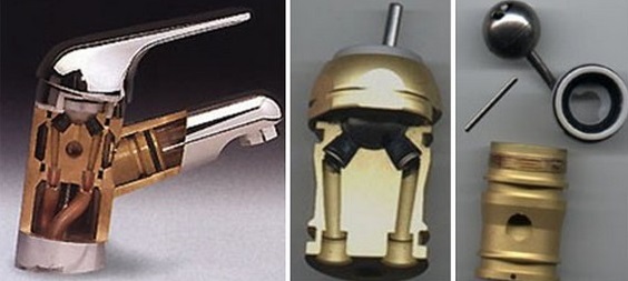 Torneira de cerâmica. O nome "cerâmica" não significa que todas as peças são feitas de cerâmica. O papel dos elementos de travamento na caixa do guindaste é realizado por duas placas de cerâmica redondas.