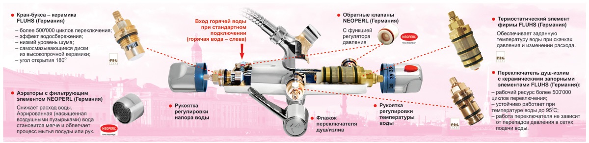 O principal problema da maioria das torneiras com termostatos são as diferenças nos layouts de tubulação padrão para tubulações de água quente e fria na Rússia e na Europa.