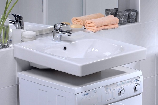 Para banheiros modestos, os fabricantes de encanamentos desenvolveram lavatórios especialmente projetados - sua altura, em média, é de 17 cm, o que permite a instalação fácil do produto na parte superior. lavadora de baixa pressão.