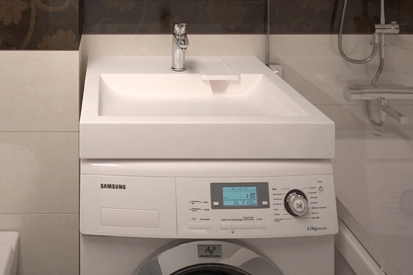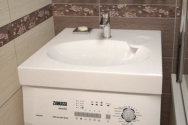 Se você planeja comprar novos equipamentos, pode prestar atenção às soluções prontas oferecidas por muitas lojas - uma lavadora de roupas baixa + uma pia adequada. Este último está equipado com todos os acessórios necessários para a instalação. Sim, e o custo desse conjunto não custará mais do que selecionar independentemente em lojas diferentes para a máquina que você mais gosta. Na maioria das vezes, o kit consiste em uma mini-máquina Candy ou Eurosoba e afunda da série Water Lily da empresa Gonets.