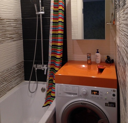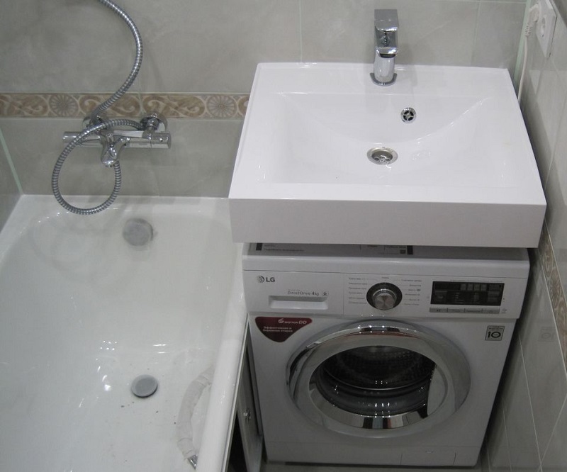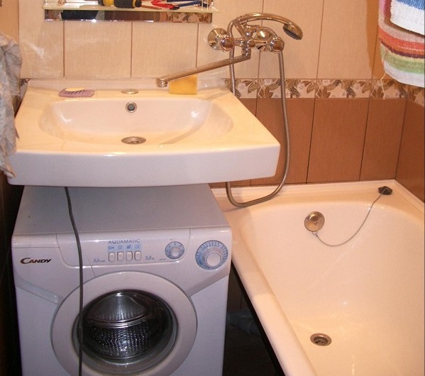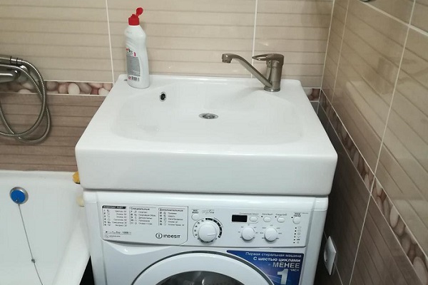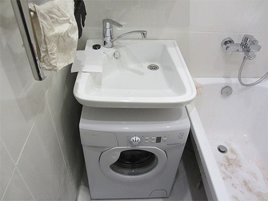 Posso aconselhar a todos na compra que prestem atenção à proporção do tamanho: a pia deve ser maior que o painel superior da máquina ou pelo menos um tamanho. Porque se for menor, salpicos de água serão derramados na lavadora e você baterá de joelhos.