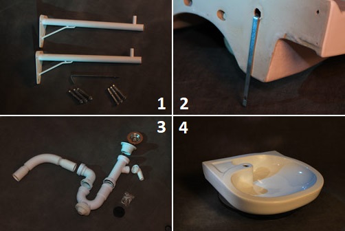 Você precisa colocar uma pia em cima - aqui você precisa de um assistente para segurar o produto, enquanto mede tudo e coloca marcas na parede para instalar suportes.