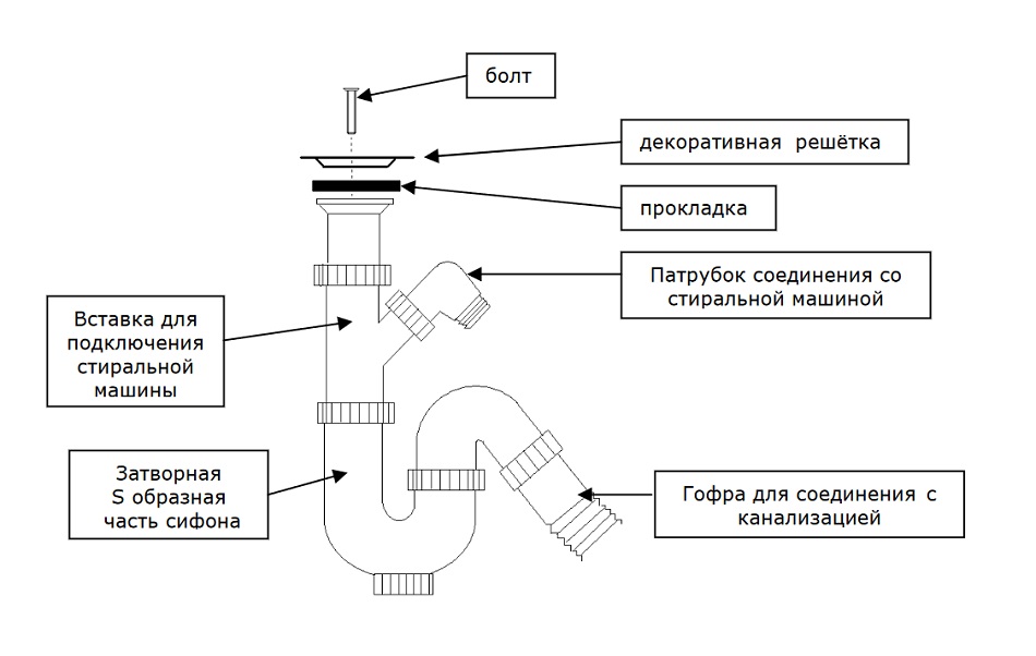 Na maioria das vezes, um sifão possui um tubo para esse tipo de pia para conectar a uma lavadora. Essa conexão também é realizada usando uma vedação de borracha - válvula de gaxeta.