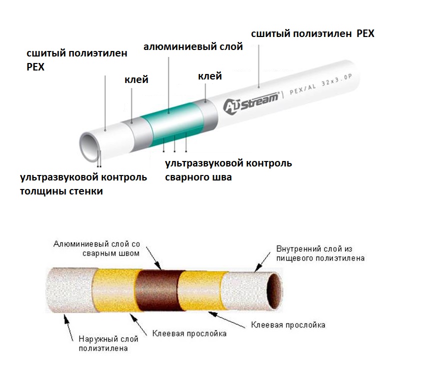 O polietileno reticulado foi originalmente projetado para altas temperaturas de operação até +95 ° C. No entanto, quando aquecido, começa a se expandir levemente. Para compensar essa expansão, é feita uma aba de alumínio entre as duas camadas de polietileno. O metal assume a maior parte do estresse resultante do polietileno através da camada adesiva, impedindo que o plástico se expanda e se deforme demais.