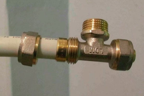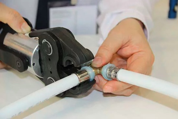 Se for planejado um encanamento metal-plástico sob a mesa no chão ou monolítico na parede, ele deverá ser montado exclusivamente com acessórios de imprensa. Eles são mais confiáveis do que os acoplamentos com porcas de crimpagem e não requerem aperto subsequente.