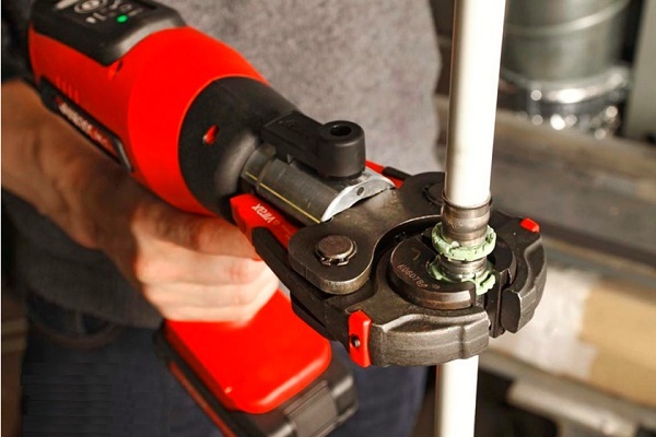 Em dispositivos com acionamento eletro-hidráulico, somente cabeças removíveis universais são usadas para prensar em uma seção de base separada de um material de tubo de metal-plástico. A carga durante o processamento se espalha por toda a área da junta e a própria ferramenta atua de maneira mais suave e suave. A qualidade das articulações após essa cravação é impecável.
