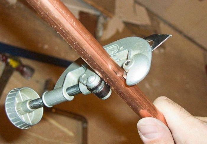 Nem sempre é possível cortar um tubo sem quebrar a estrutura da parede. A espessura da parede dos tubos de cobre até um diâmetro de 28 mm é de apenas 1 mm. Mesmo o uso do disco corta-tubos para tubos de cobre não oferece garantias completas de uniformidade de corte. Se forem observadas perturbações na parede, use um calibrador. Com esta ferramenta, o tubo e o soquete são calibrados (alinhados).