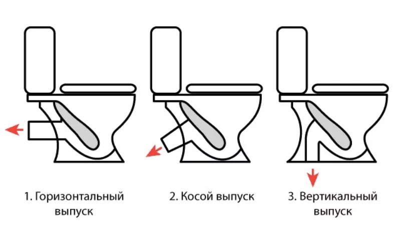 A saída do vaso sanitário pode estar localizada no mesmo nível do riser, ser direcionada para o chão ou em ângulo. A última opção é a mais comum